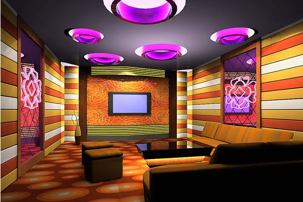 還有,在合肥ktv裝修的時候,色彩的搭配是一個很重要的方面,不同的色彩搭配可以有或溫柔、沉穩、嬌艷、神秘、質樸、華麗、歡快、憂郁等等不同的效果。我們需要注意的是應當先選出主色調,然后可以選用具有強烈對比效果的色彩,如亮對暗,暖色調對冷色調,可以達到生機盎然的效果 。現代的KTV色彩設計一般比較追求時尚但是懷舊的設計也是很有市場的。燈光和色彩在ktv裝修之中是很重要的,很好的搭配能夠烘托ktv的氣氛。要明確的是,KTV裝修雖然需要諸多燈光,但是不宜過亮,要以柔和為主,當然,特殊需要的地方,諸如收銀臺,可以局部用亮光。