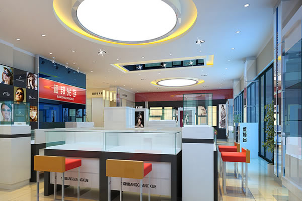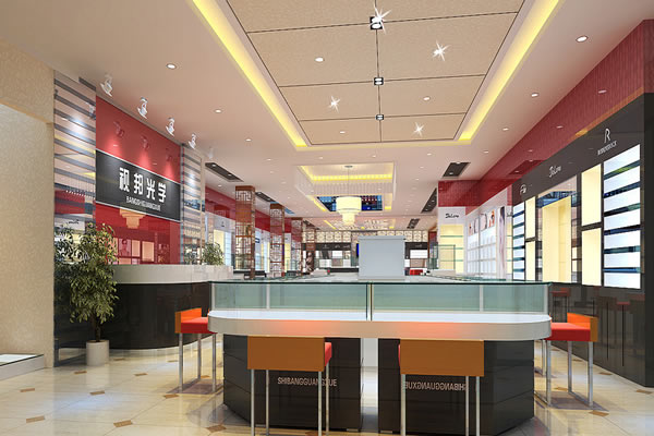 大廳是展現給客人最基本最實在的部分,各種眼鏡樣品都在這里展示給顧客,因此此處的精品裝修非常重要,也是提升一個眼鏡店身價的保障。大廳對于照明、色彩、鏡子的運用顯得相當重要,一般眼鏡店都使用白光照明,以透出眼鏡的質感,光亮的感覺也能體現出一種更舒適的購物氣氛。在色彩的搭配上,淺色眼鏡用深藍色襯托、深色眼鏡用白底來表現,都更符合文化消費的情調也能感受眼鏡的色彩和材質帶來的另類感。同時,鏡子的運用也很重要,能給人店面寬敞的錯覺,起到亮堂、開闊視野的作用。