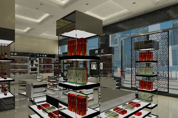 煙酒專賣店以經營煙酒為主,在設計店面時,應主要考慮煙酒商品的布局。經營者最好對煙酒進行分區陳列,因為煙有購買頻率高、購買零散的特點,從取貨容易和防盜兩方面來考慮,煙一般應放置在店鋪里側,并用柜臺將其與外部分開。